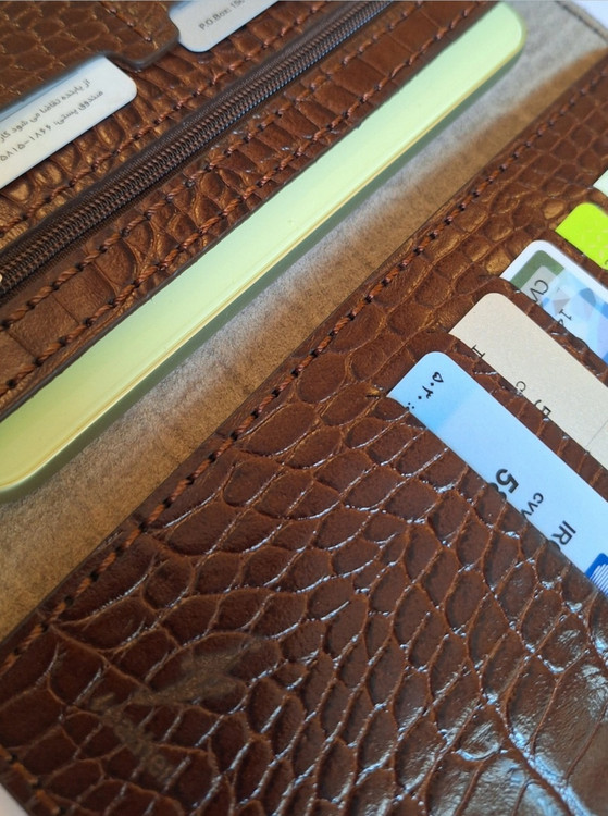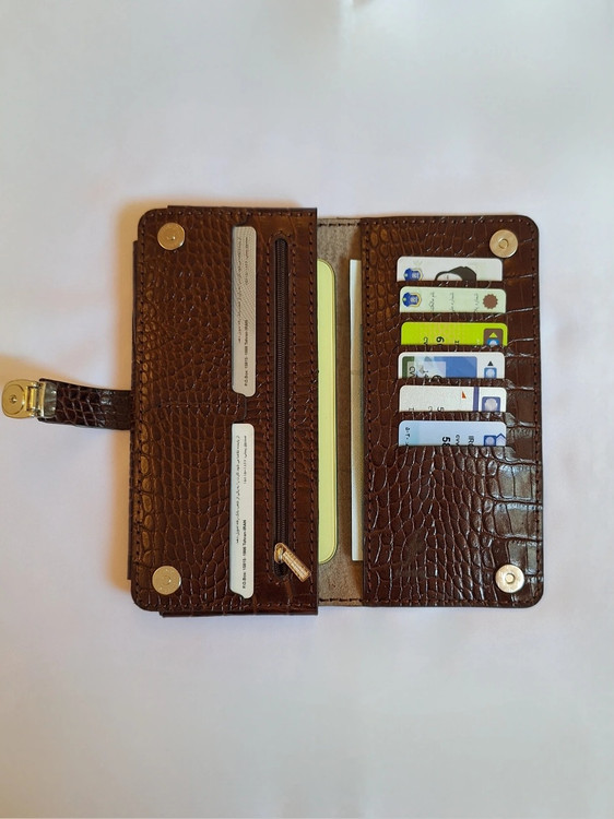 دارای یک جیب موبایل/ یک جیب اسکناس/ ۸ جیب کارت/ یک جیب زیپ دار