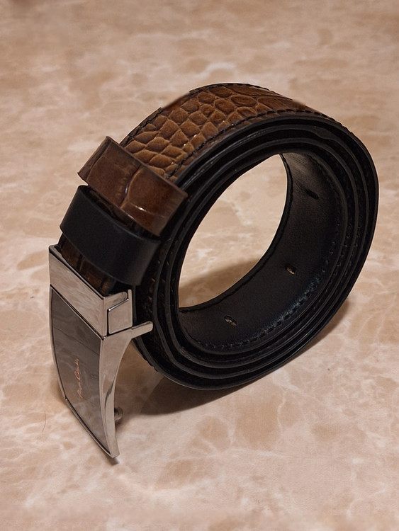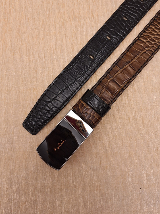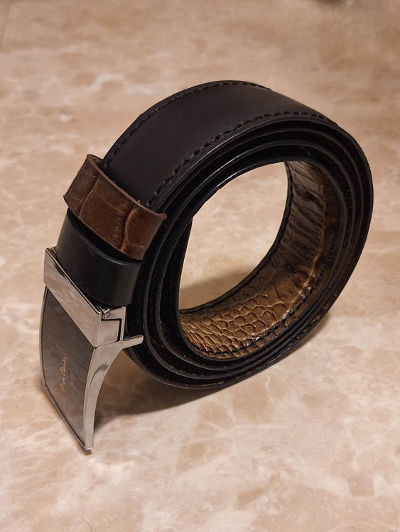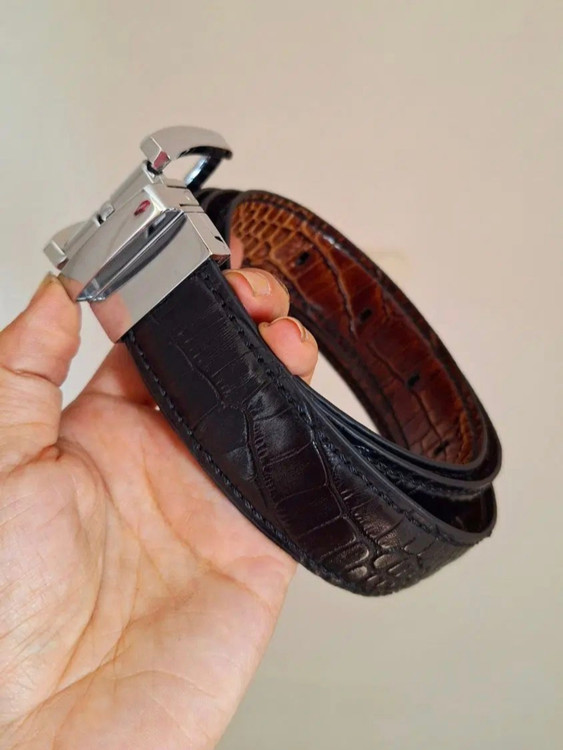 کمربند مردانه دورویه/ چرم طبیعی گاوی اعلای تبریز/ با سگک چرخشی/ دستدوز/ قهوه ای/ مشکی/ سرمه ای/ جِی چرم تبریز