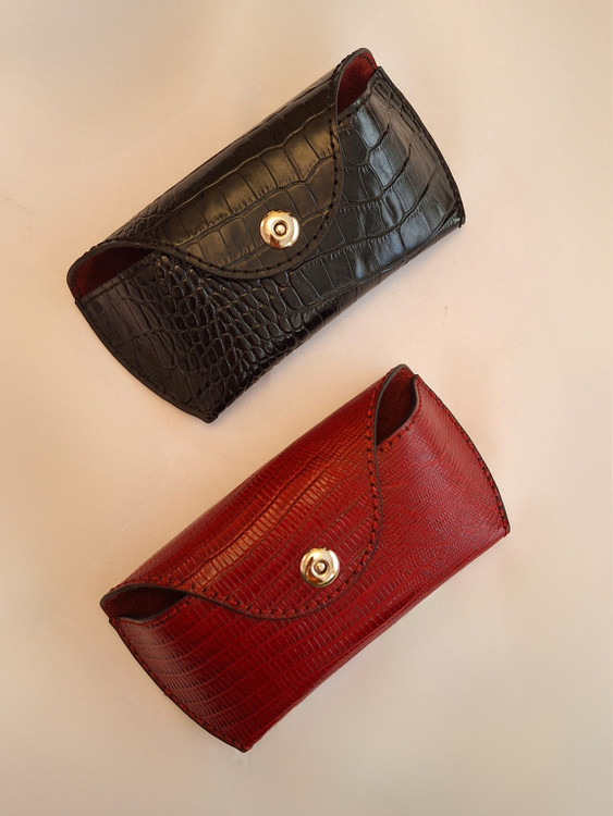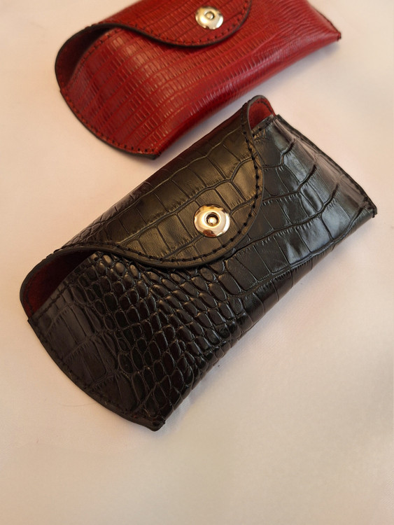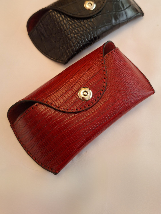 قاب عینک چرم طبیعی گاوی اعلای تبریز/ دستدوز/ زنانه/ مردانه/ مشکی/ زرشکی/ جگری/ قرمز
