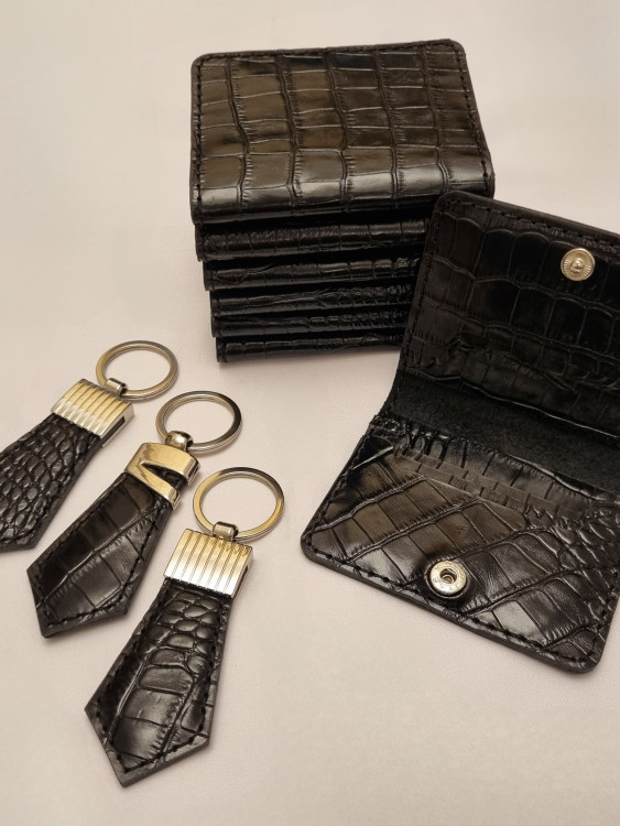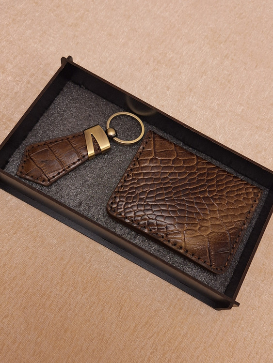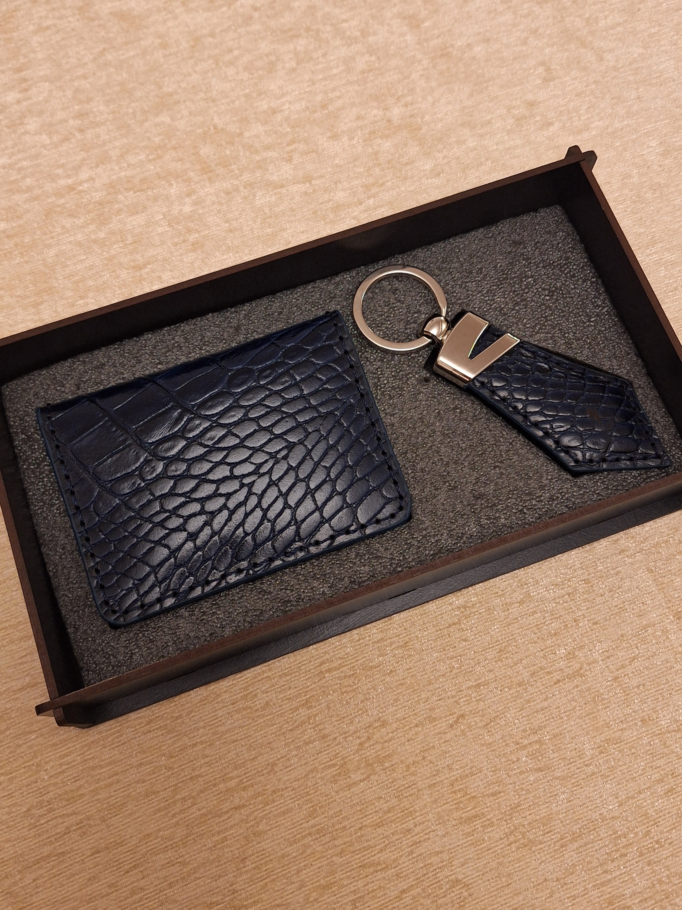 ست جاکارتی جیبی و جاکلیدی کراواتی با باکس چوبی
