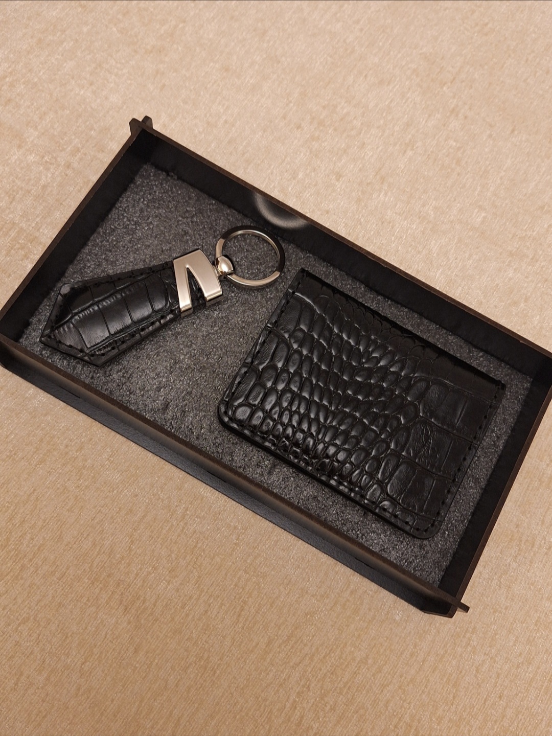 ست جاکارتی جیبی و جاکلیدی کراواتی با باکس چوبی
