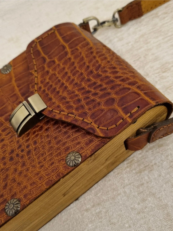 چرم طبیعی گاوی دستدوز با طبله چوبی