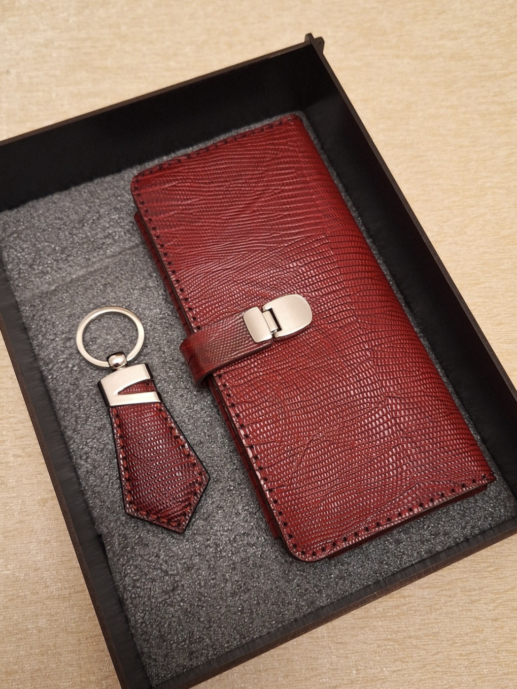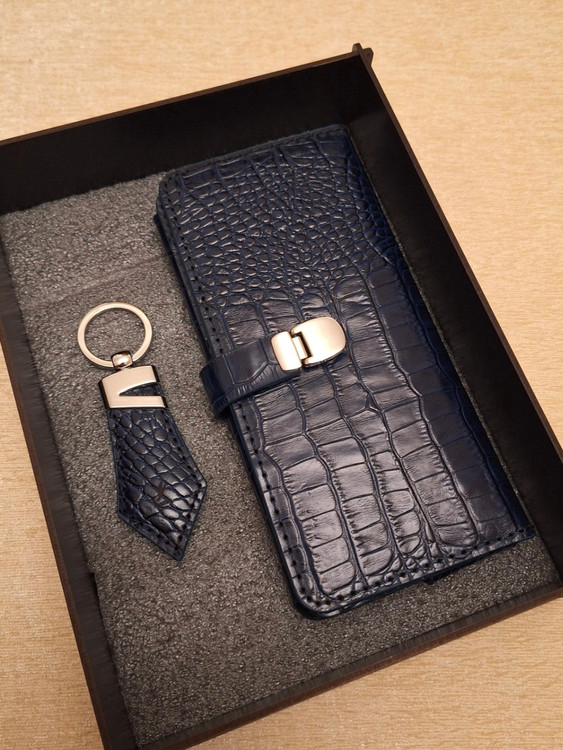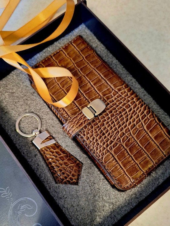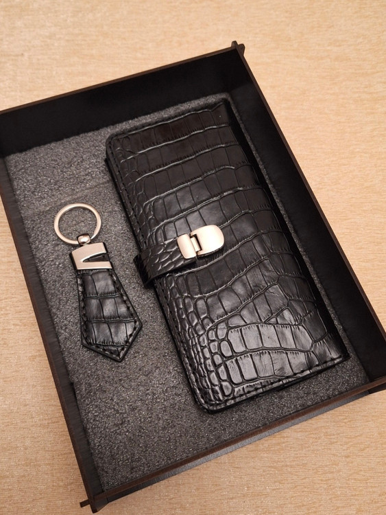 ست کیف پول کتی (کیف موبایل) و جاکلیدی کراواتی با باکس چوبی