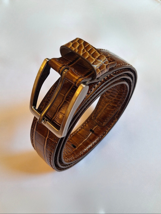 کمربند مردانه سه لایه چرم گاوی اعلای تبریز/ دستدوز/ با سگک میخی/ هر دو طرف چرم گاوی
