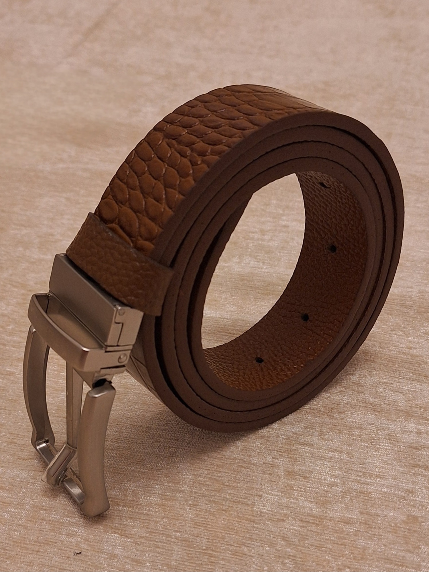 کمربند مردانه چرم گاومیش تبریز / دورویه با سگک چرخشی