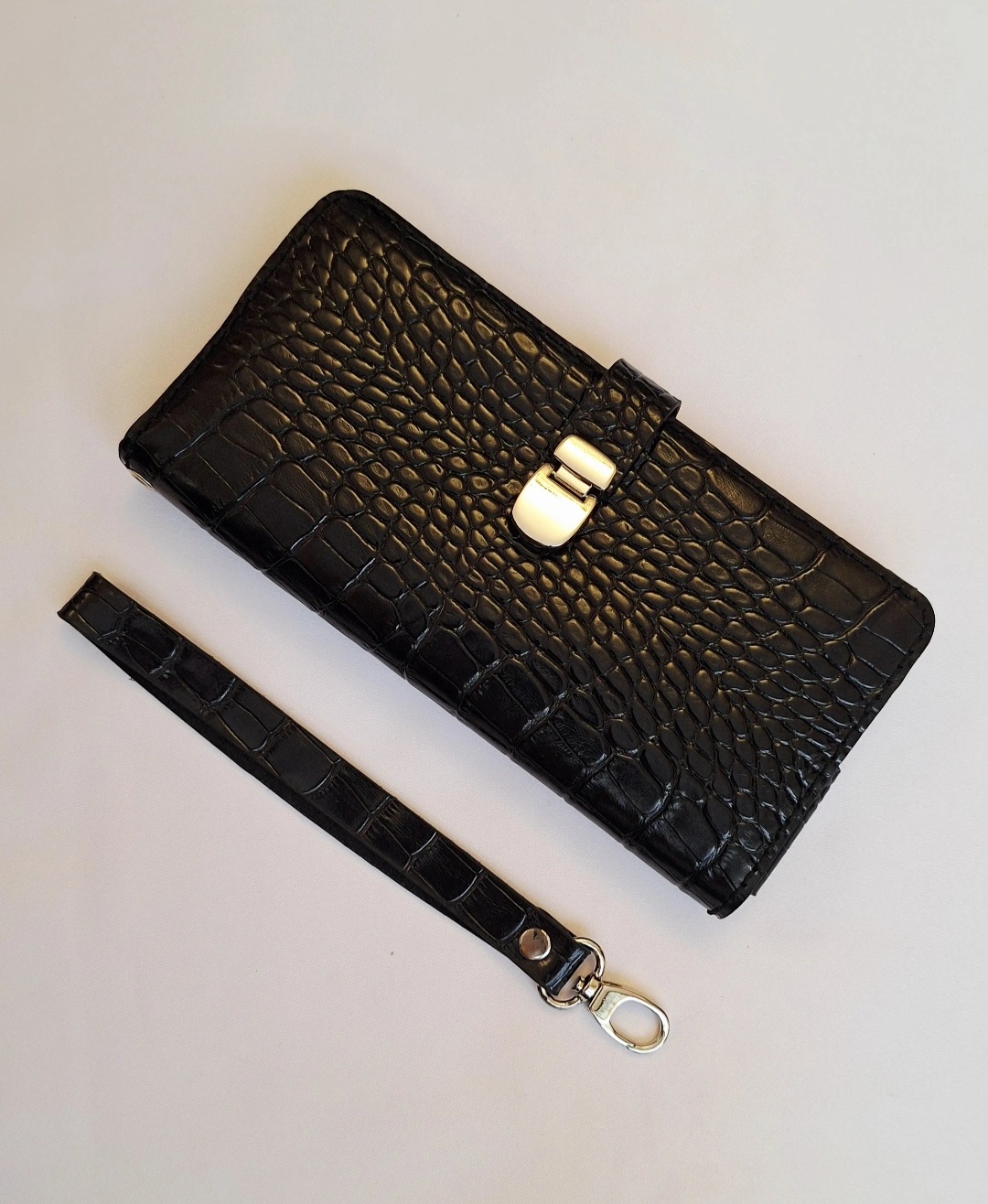 کیف پول دارای جیب موبایل، ۱۰ جیب کارت، دو جیب اسکنلس، یک جیب زیپ دار و دو جیب سیم کارت